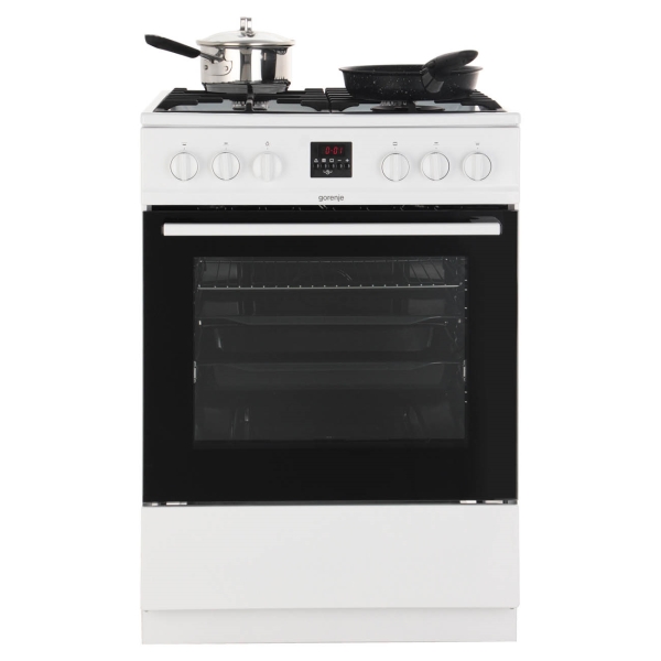 Газовая плита Gorenje GI6320WA — современный полноразмерный прибор (ширина 60 см) с широкими возможностями. Эта модель оборудована четырьмя конфорками, одна из которых с двумя рядами пламени. Она подойдет для вока — сковороды с округлым дном.