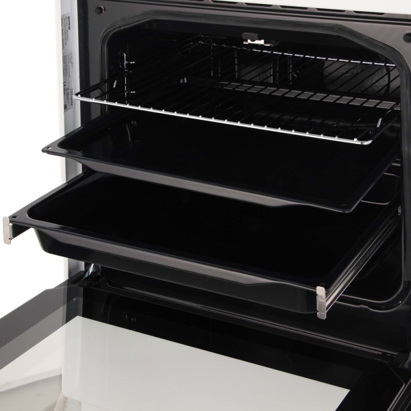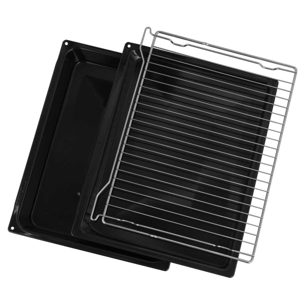 Духовка работает в режиме нижнего нагрева и гриля. За управление отвечают поворотные регуляторы и электронный кнопочный программатор, настройки отображает цифровой дисплей. С его помощью можно установить таймер с функцией отключения.