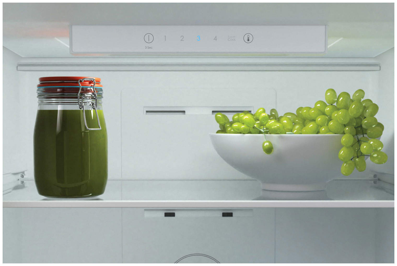 Система управления – электронная. Она обеспечивает полный контроль над настройками и позволяет в любой момент включить режим «Быстрое охлаждение». LED-освещение помогает с минимальными затратами времени найти то, что вам понадобилось в данный момент, и экономно потребляет при этом электроэнергию.