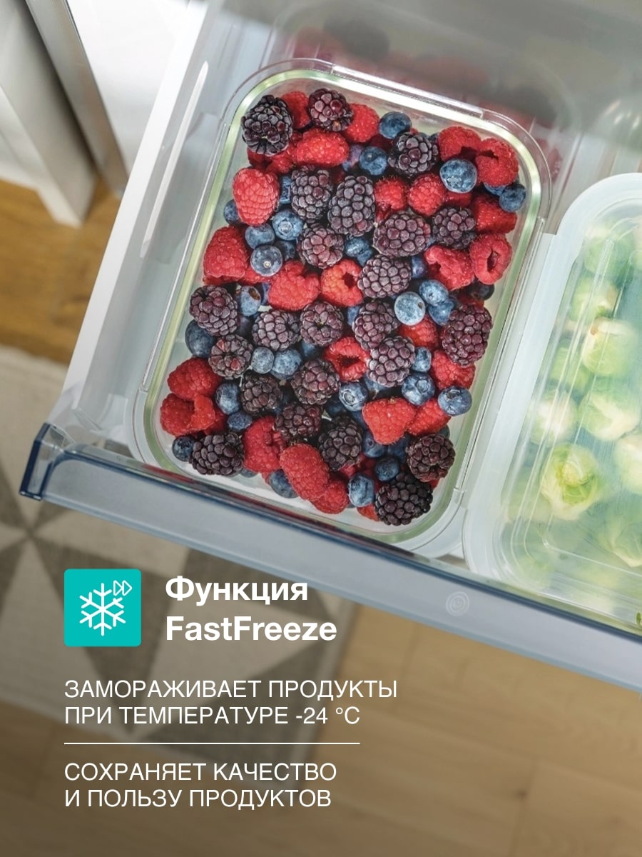 Зона свежести FreshZone с возможность выбора режима работы (зона свежести / ящик для овощей и фруктов)