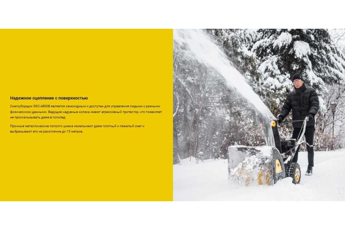Маневренная, производительная, надежная модель HUTER SGC 4800B пригодится на дачном, приусадебном участке, в гаражном кооперативе, других местах, где есть необходимость частой уборки снега.