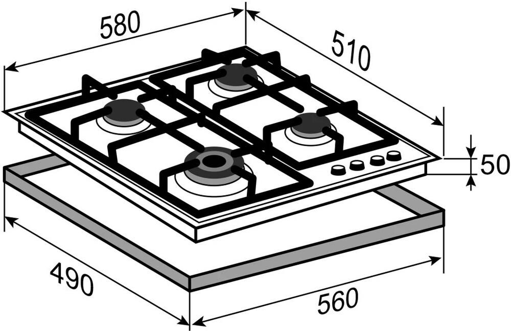 | Особенности | чугунные решетки, быстрый нагрев, газ-контроль, конфорка WOK, электроподжиг в поворотной ручке |