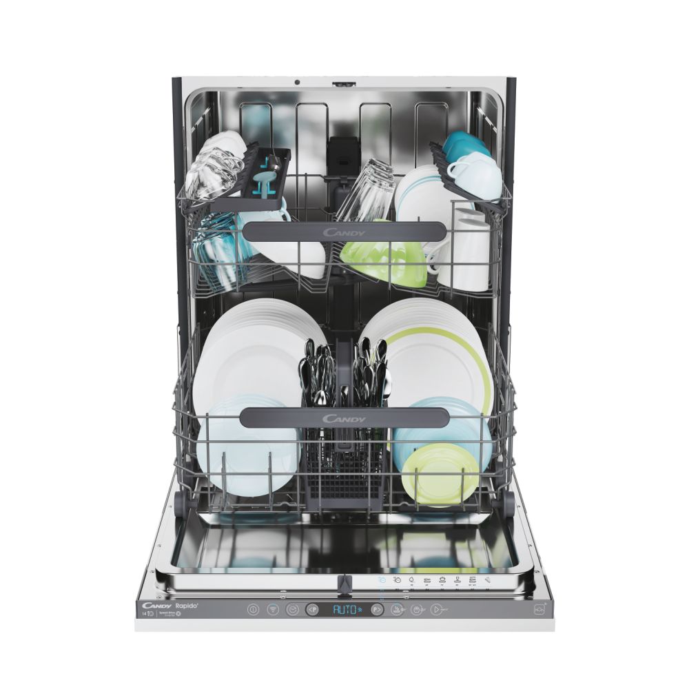 Среди посудомоечных машин стандартного размера Candy Rapido’ имеют объемную моечную камеру Maxi Tub, что позволяет загрузить посуду даже очень большого размера (например, противни для запекания, разделочные доски, салатницы и др.)