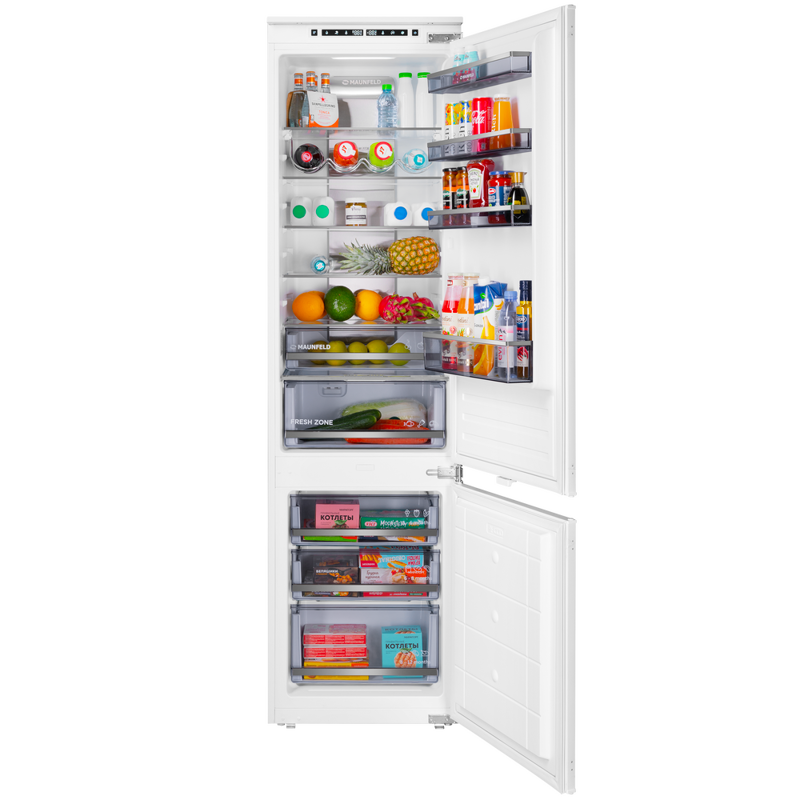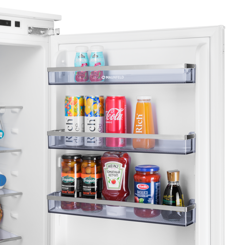MAUNFELD MBF193NFWGR Inverter— стильный встраиваемый холодильник белого цвета, который идеально впишется в любой кухонный интерьер. Высота устройства составляет 193.7 см, что позволяет эффективно использовать пространство.