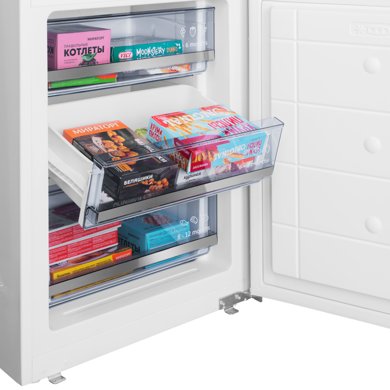 Технология Total NoFrost предотвращает образование наледи в обеих камерах, а функции суперзаморозки и суперохлаждения позволяют быстро подготовить продукты к длительному хранению. LED-освещение обеспечивает равномерную подсветку всех полок.